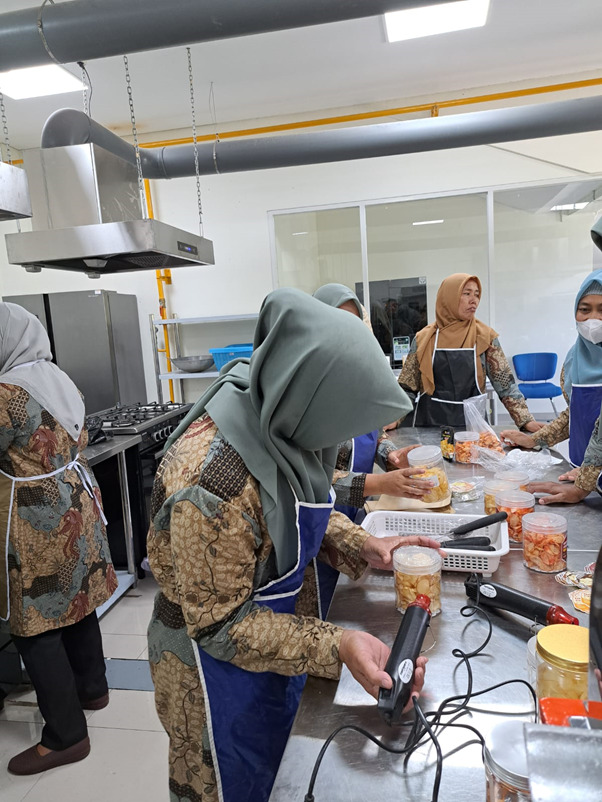 Selama pelatihan, para peserta tampak antusias dan aktif berpartisipasi dalam setiap sesi yang disampaikan oleh tim pengabdi. Mereka mempraktikkan cara pemotongan singkong menggunakan mesin pemotong, membuat keripik singkong dengan berbagai rasa, serta belajar teknik pengemasan yang menarik dan higienis. Selain itu, mereka juga mendapatkan pengetahuan tentang strategi pemasaran yang efektif untuk memperluas jangkauan pasar produk olahan singkong mereka.