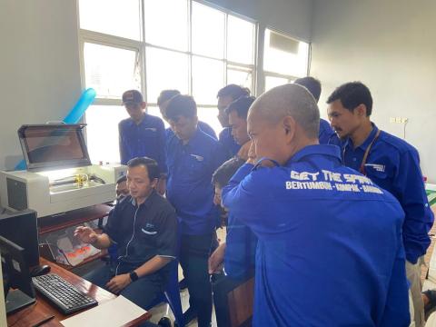 Memasuki hari kedua, fokus pelatihan beralih ke sesi praktik. Para guru dipandu secara langsung untuk mempraktikkan langkah-langkah pengoperasian mesin laser cutting. Tidak hanya itu, mereka juga berkesempatan untuk membuat produk contoh dari bahan non-logam berupa akrilik, sehingga dapat merasakan langsung aplikasi dari teori yang telah dipelajari.